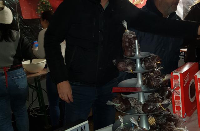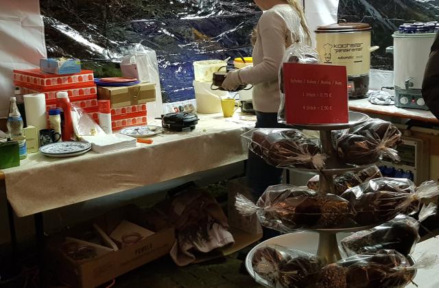 Auch wenn es abends immer wieder einen kurzen Regenguss gab und ab und zu der Strom in die Knie ging, standen die Gäste für Pommes, Glühwein und Waffeln geduldig an. Außerdem hatte der TCF wieder diverse Schokoküsse im Angebot, die ebenfalls sehr begehrt waren.