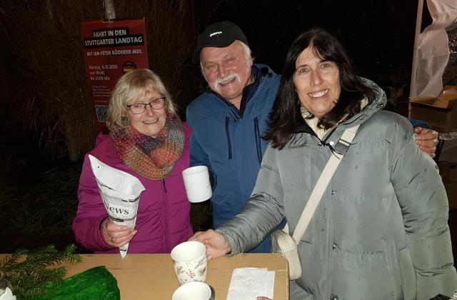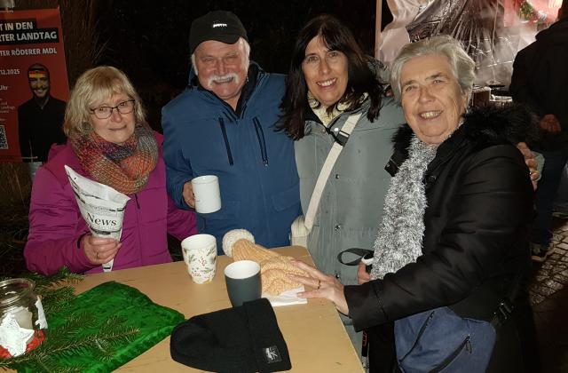 An diesem Abend ging es nicht nur um´s Essen, sondern auch darum, sich zu treffen, ein paar gemütliche Stunden zusammen zu verbringen, Anekdoten aus den letzten Monaten zu erzählen. Zwar hatten die fleißigen Helferinnen und Helfer entlang der Straße Feuerschalen aufgebaut, aber durch die milden Temperaturen warfen sie ihren Feuerschein eher dekorativ in die Nacht als wirklich als Wärmequelle zu dienen.